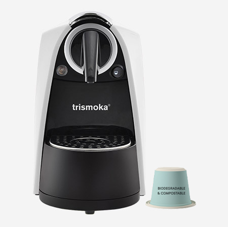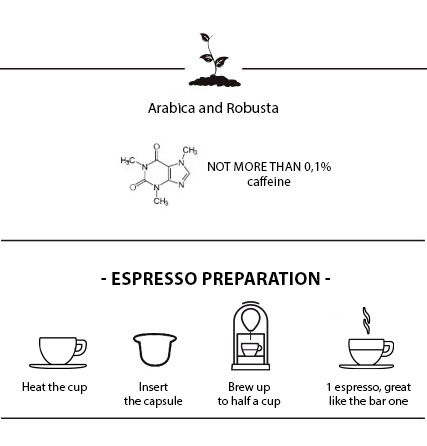 Notes of chocolate and light acidity characterize the Trismoka Decaffeinato coffee capsules. Pack of 10 compostable capsules, Nespresso® compatible.