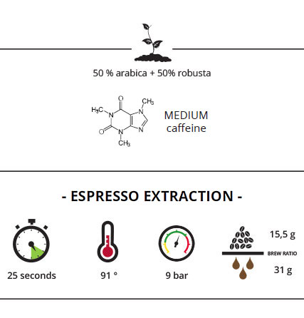 Italia is a coffee blend for cafés, home and office with 50% Arabica and a medium caffeine level, from selected productions in Brazil, Colombia, Congo, Guatemala and India. Who is choosing Italia from the Trismoka blends loves coffee with a sharp and intense flavour, with a well-structured body and chocolate notes, particularly suitable after a meal.