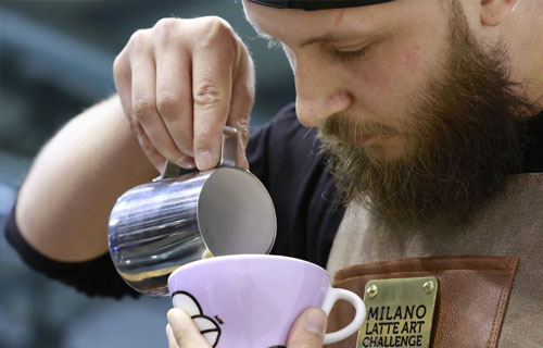 Today, the creative preparation of the cappuccino is an art that joins several performers all over the world. To keep the standard at the highest levels, Trismoka conceived and organised an international competition with the world’s best Latte Art artists. In the Trismoka space at Host Milano, an international hospitality show, 12 baristas compete in 9 different disciplines of increasing difficulty level. From simple and traditional systems to more complex figures and techniques. An head-to-head to win the title of world champion.