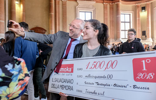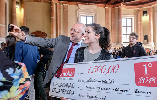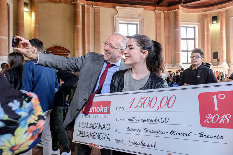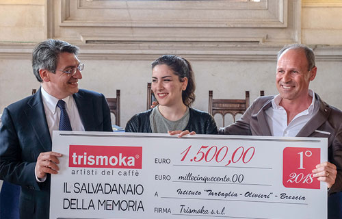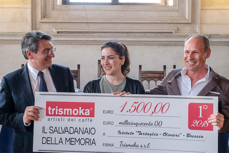 Gaia Terranova, student of the IVF of the "Tartaglia-Olivieri" Institute of Brescia, is the winner of the competition for the making of the new Trismoka Collection 2018. Her work, entitled "Fogli e Foglie", was chosen to decorate the 2018 limited edition collection of Trismoka espresso cups. The second prize was awarded to Arianna Colajori and Cecilia Tamagni, of the V A of the artistic high school "Camillo Golgi" of Breno, for the proposal "Memoria di un pesce rosso". The third prize was won by Marco Tintori, of the VB TG class of the "Zenale e Butinone" Institute in Treviglio.